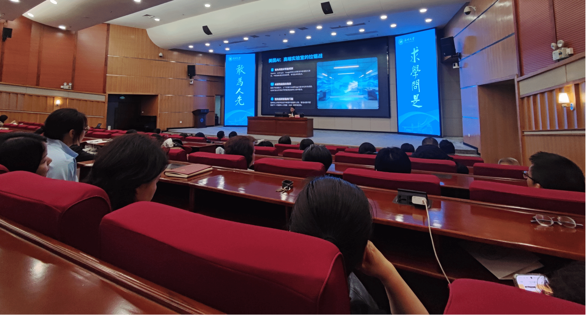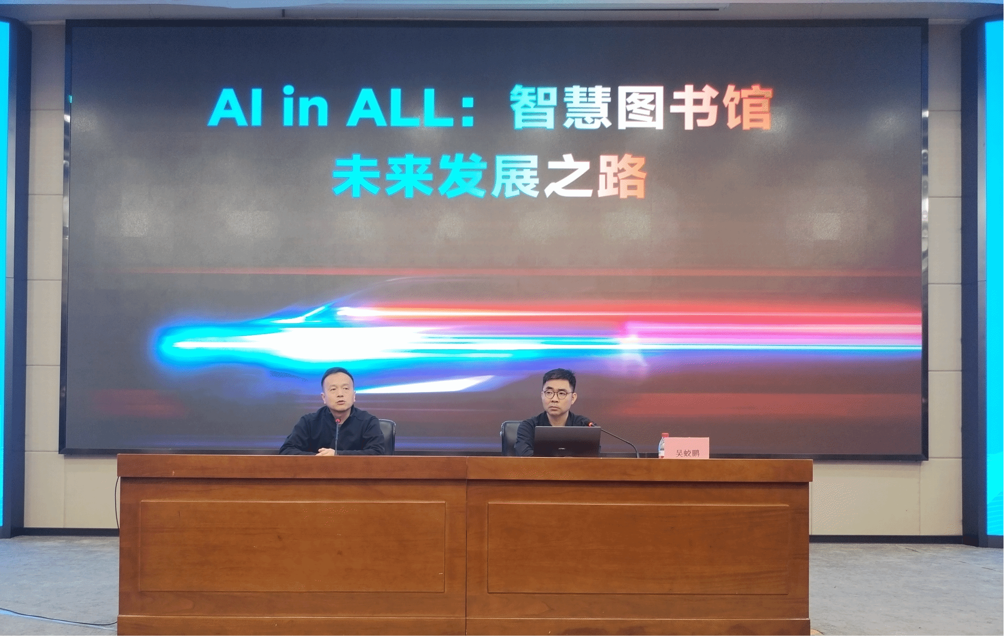 吴蛟鹏副馆长以“AI in ALL:智慧图书馆未来发展之路”为题,梳理了全球AI巨头的发展理念,比较了中美AI竞争力,详细阐述了国内外的AI主流大模型,展示了国内图书馆AI应用的标杆案例与典型场景,重点介绍了温州市图书馆的智慧化建设实践项目。